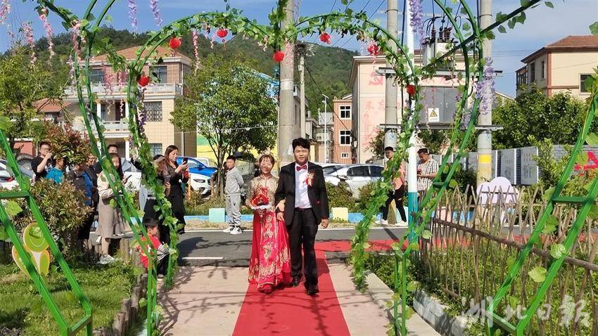 2022年初,上畈湾村口小游园建起婚俗文化主题公园,火石村的年轻人在家门口就能办一场别具一格的草坪婚礼。