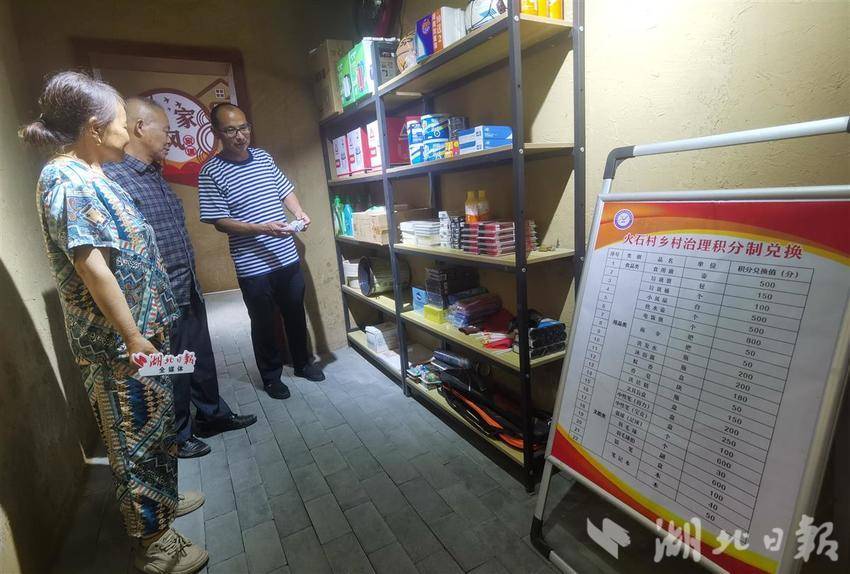 “我用积分兑了洗衣粉、食用油。”6月15日,在火石村湾组党建阵地积分超市,村民罗梦希告诉记者,正在努力赚积分,还想兑一个电饭煲。